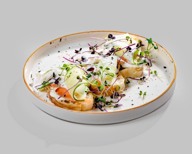 Брускетта с лососем и страчателлой